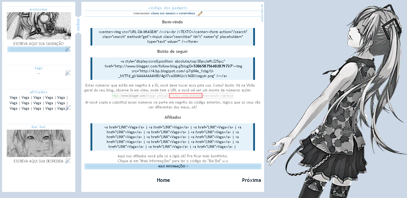Está bem simples, mas é que eu propositalmente deixei brechas pra vocês personalizarem o/ Obrigada mais uma vez e se quiserem ler minha felicidade e meus agradecimentos, estão todos no próprio preview do Layout -qq