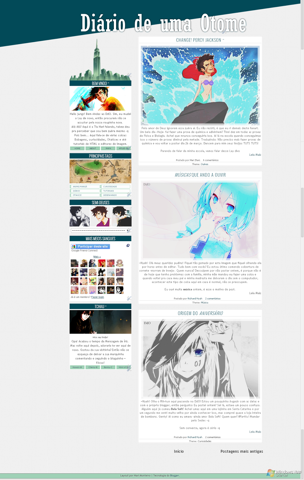 Já acho lindo seu layout atual lindo, é tão inspirador... Lembro me que vc tenha usado esse layout do Percy jackson uma vez... Ou será impressão minha? Bom, apenas falando que gosto muito do design que vc utiliza no blog! Eles são lindos!